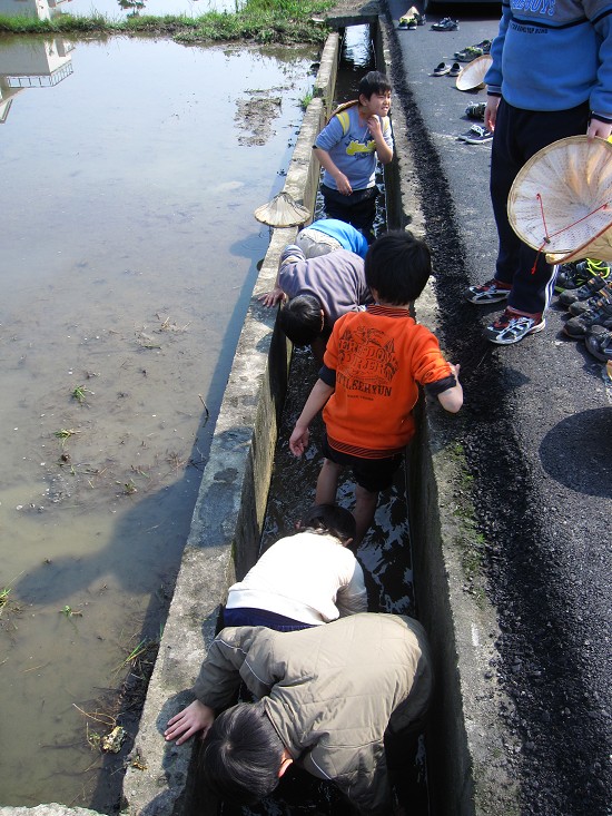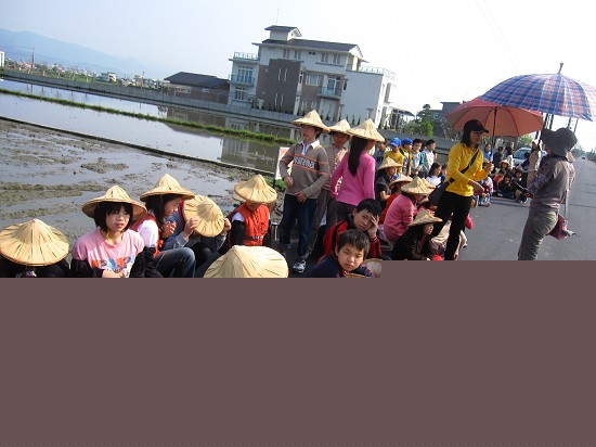 3/14上午九時深溝國小120位學童在彭芳玲校長及學校教師的帶領下,舉行敬拜土地公儀式,接著學童光著腳丫、戴著斗笠、挽起袖子、捲起褲管,由台灣稻農公司王得利股東事先將稻田「畫格」及示範插秧技巧,完整體驗傳統農民春耕的辛勞。.
