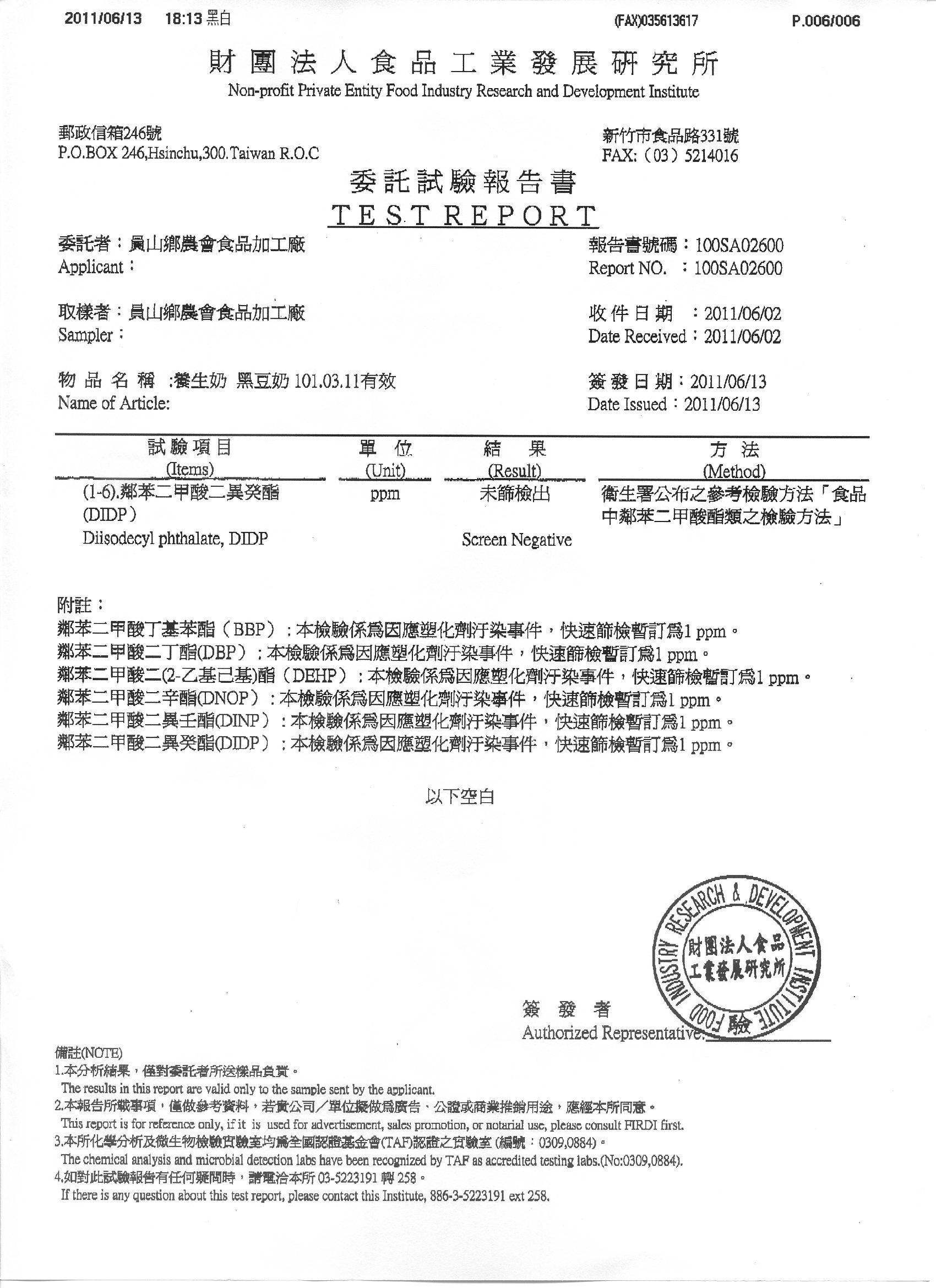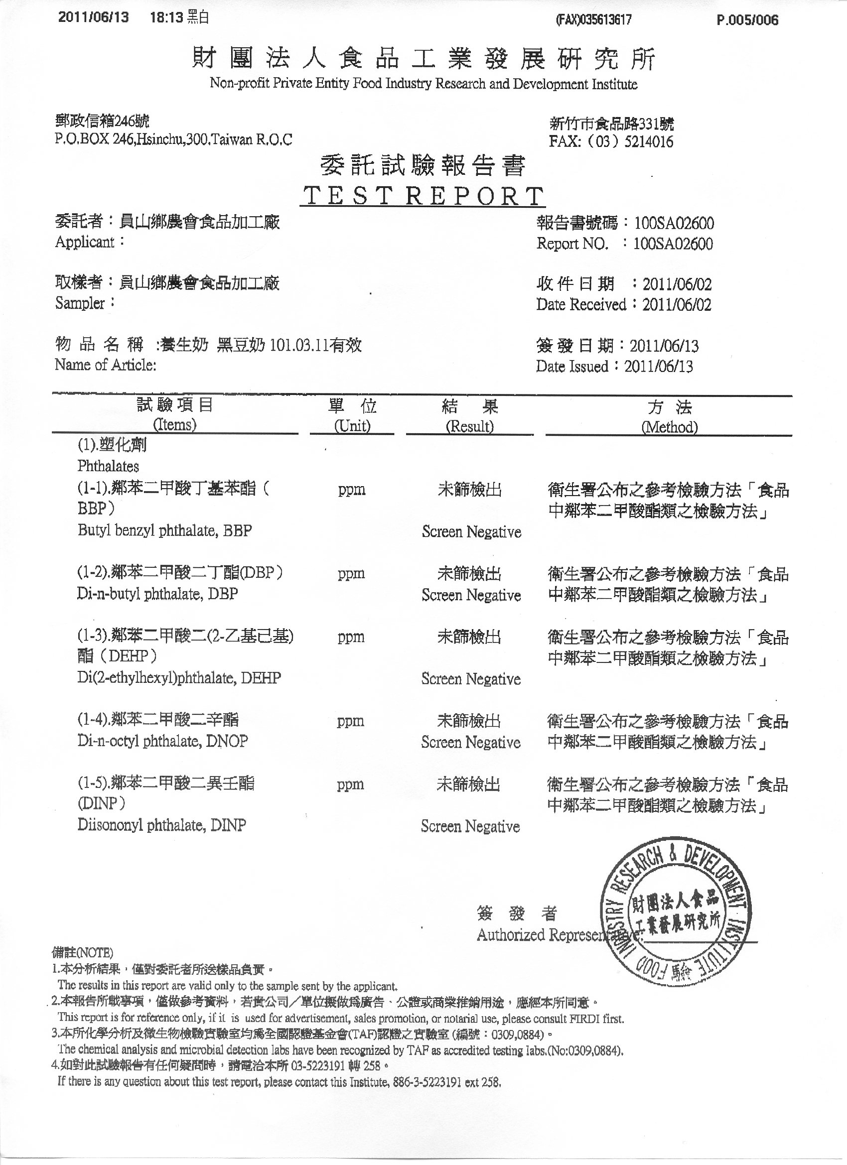 黑豆奶檢驗報告